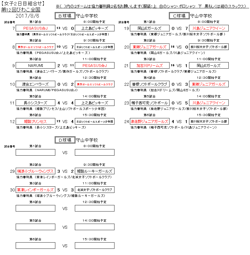 | 主管 | びわこオープン全国ジュニアソフトボール大会実行委員会、守山市ソフトボール協会 |